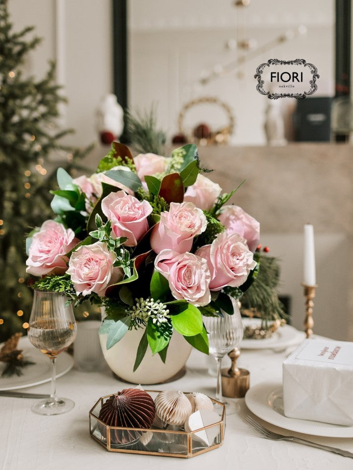 This arrangement is more than just flowers; it's a centerpiece that tells a story—a whimsical echo of festive joy and sugar-dusted memories.